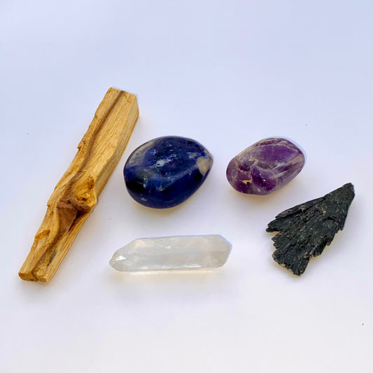Crystal Kit for Intuition | Black Kyanite, Quartz, Amethyst, Sodalite, Palo Santo Stick